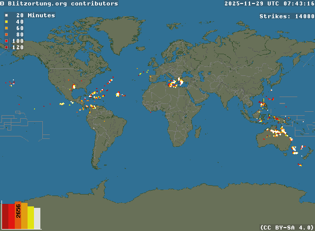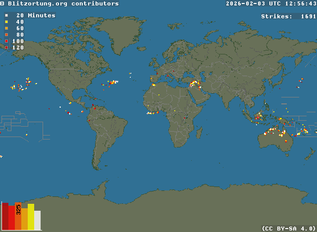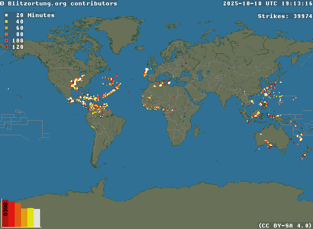 Netværk for live lyn og tordenvejr - Real time lightning map