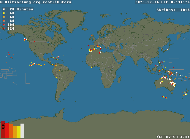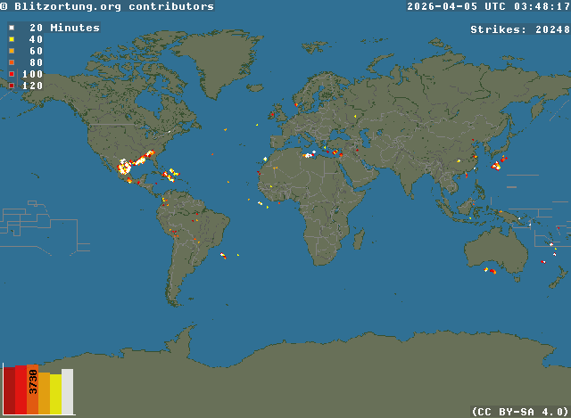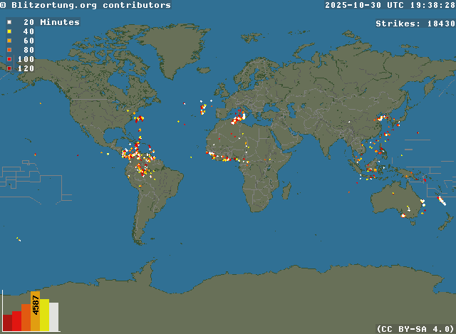 Netzwerk für Blitze und Gewitter in Echtzeit - Real time lightning map
