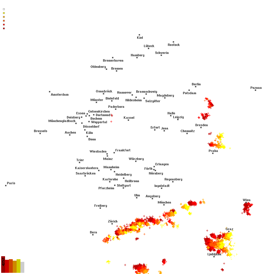 Netzwerk für Blitze und Gewitter in Echtzeit - Real time lightning map