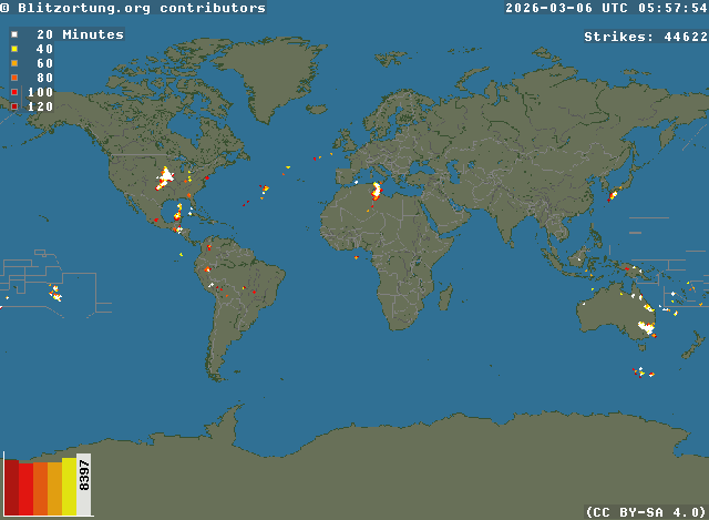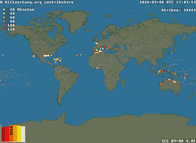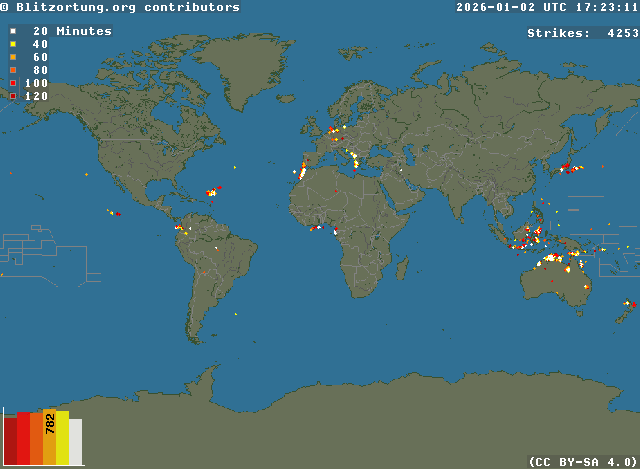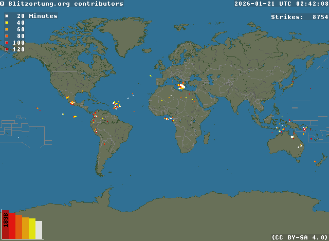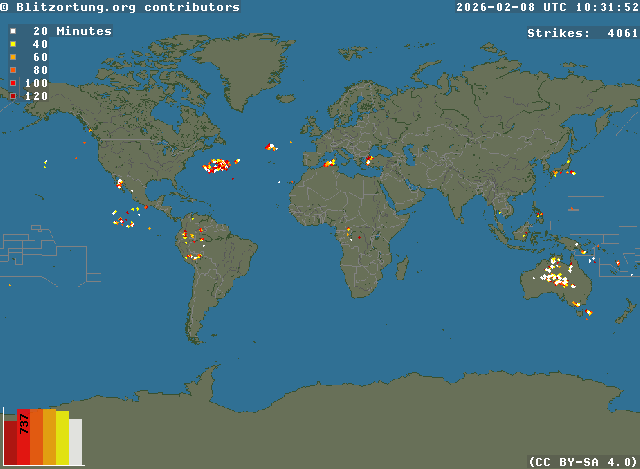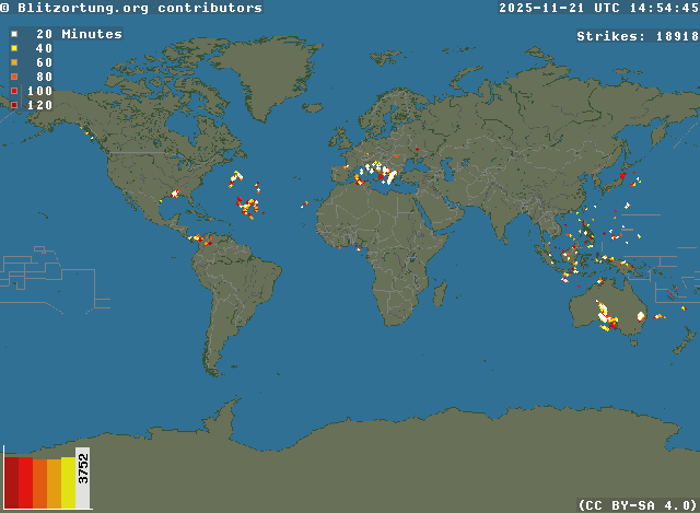 Network for Lightning and Thunderstorms in Real Time - Real time lightning map