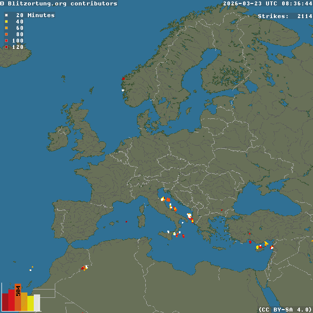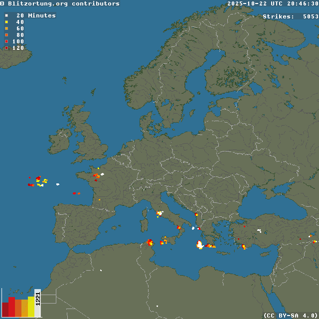Network for Lightning and Thunderstorms in Real Time - Real time lightning map