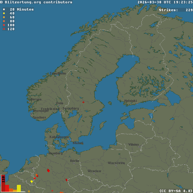Network for Lightning and Thunderstorms in Real Time - Real time lightning map
