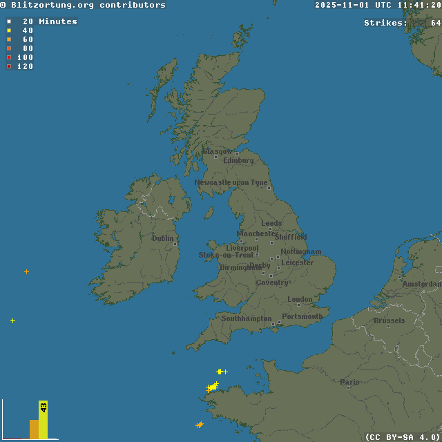 Network for Lightning and Thunderstorms in Real Time - Real time lightning map