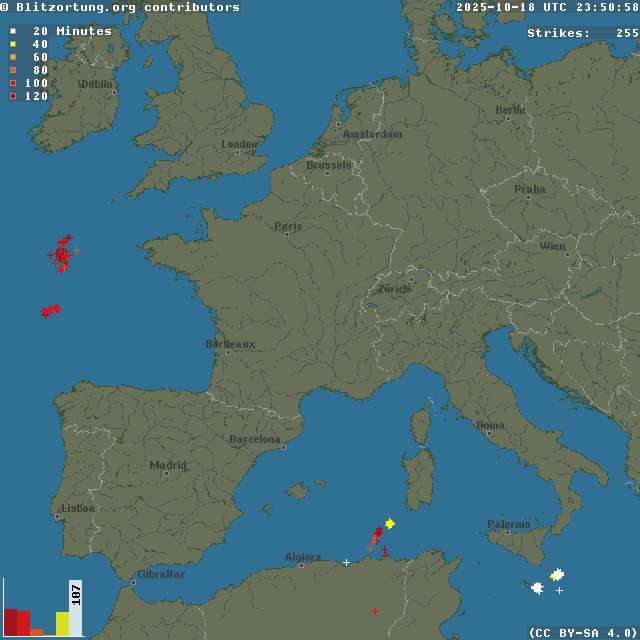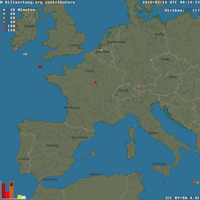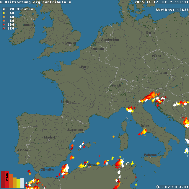 Network for Lightning and Thunderstorms in Real Time - Real time lightning map