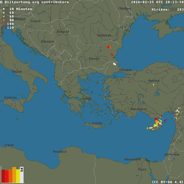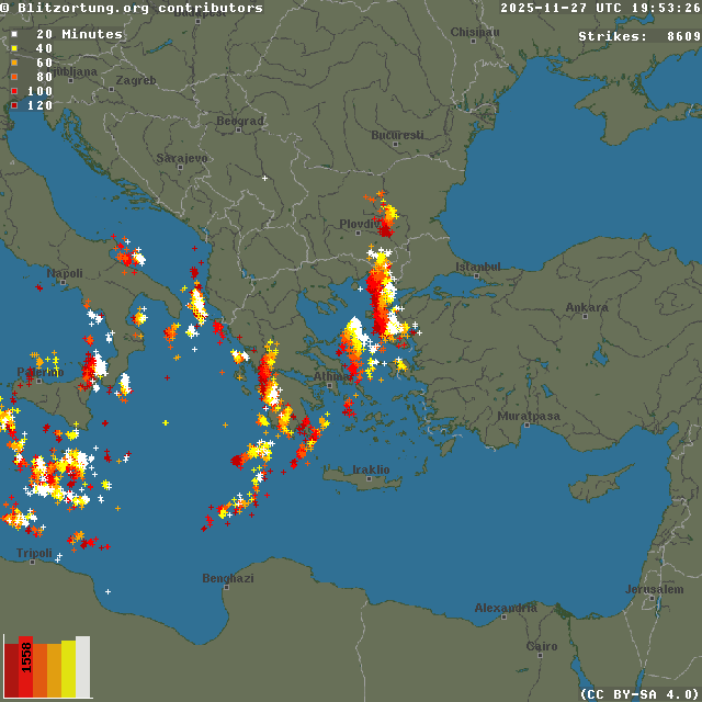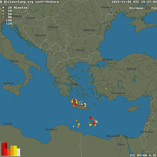 Network for Lightning and Thunderstorms in Real Time - Real time lightning map