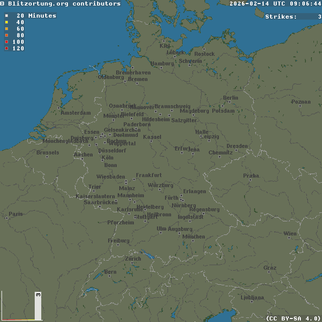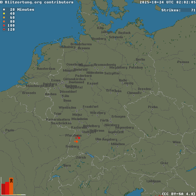 Network for Lightning and Thunderstorms in Real Time - Real time lightning map
