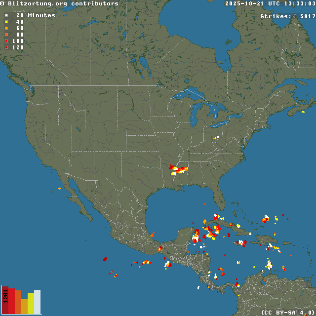 Network for Lightning and Thunderstorms in Real Time - Real time lightning map