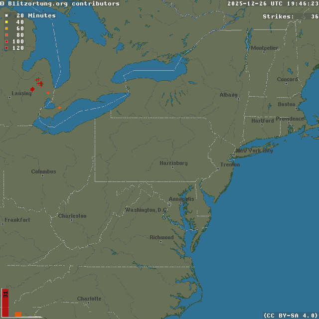 Network for Lightning and Thunderstorms in Real Time - Real time lightning map