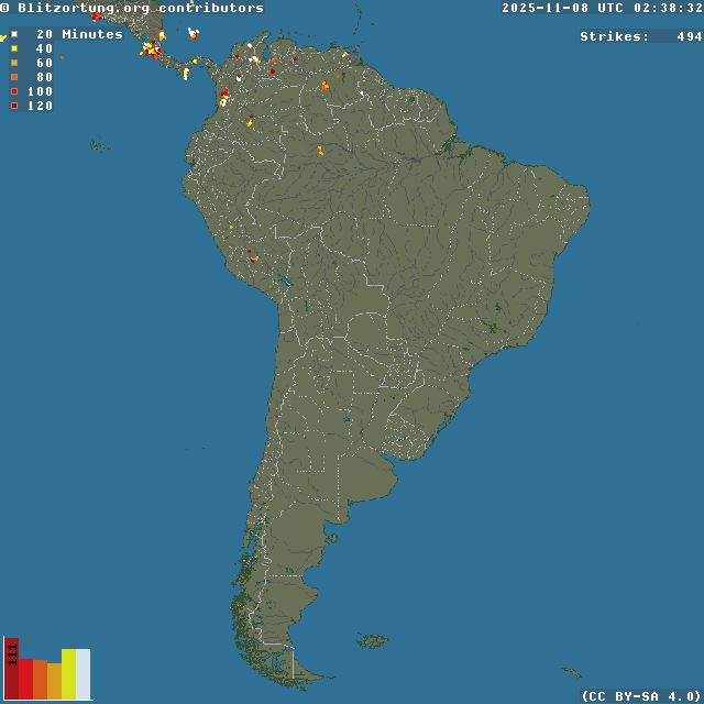 Network for Lightning and Thunderstorms in Real Time - Real time lightning map