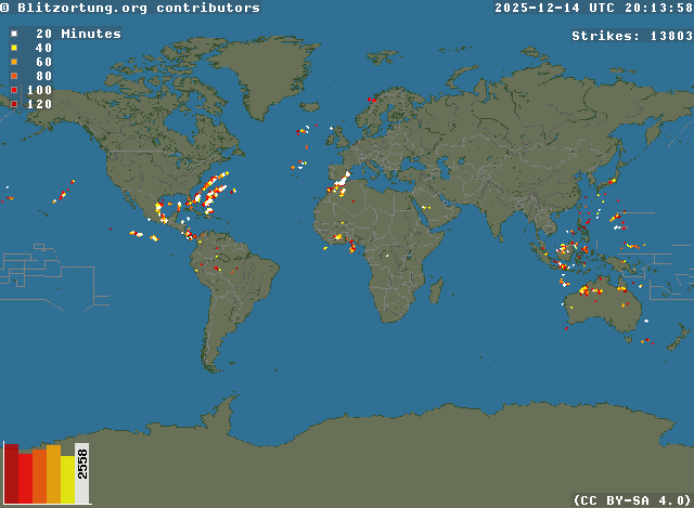 Network for Lightning and Thunderstorms in Real Time - Real time lightning map