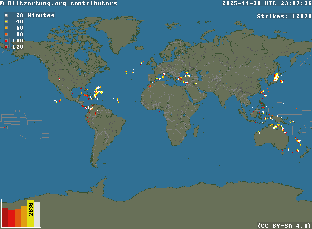 Network for Lightning and Thunderstorms in Real Time - Real time lightning map