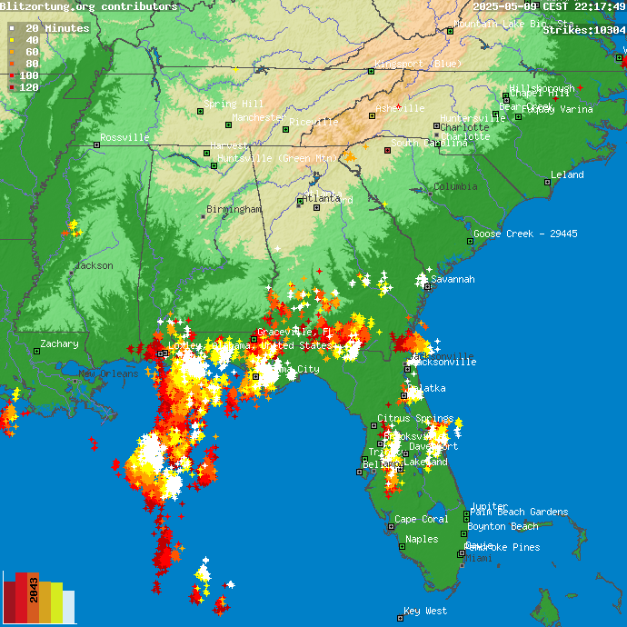 The calculations of blitzortung.org are carried out in several containers processed on different servers. The results are stored in the "Strikes_xx" directories. The current assignment of the directories to the regional areas is as follows: