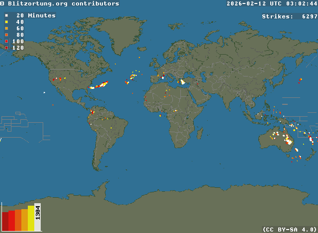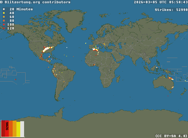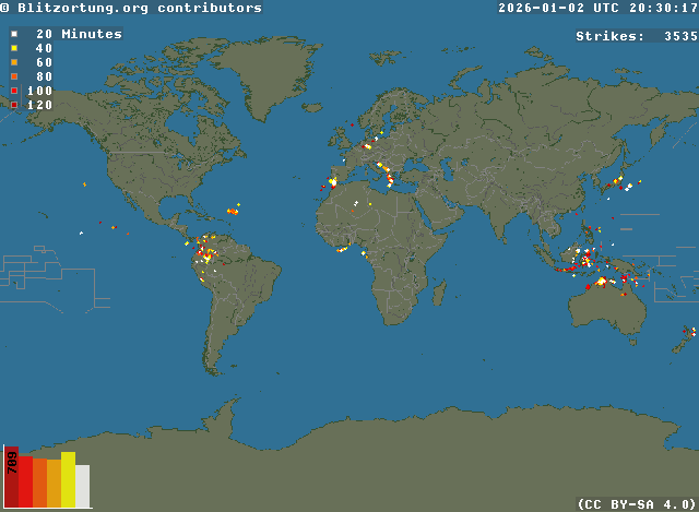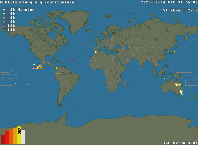 Network per fulmini e temporali in tempo reale - Real time lightning map