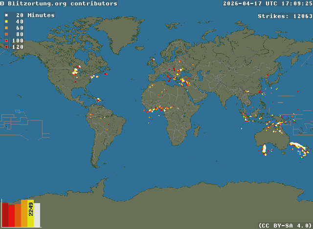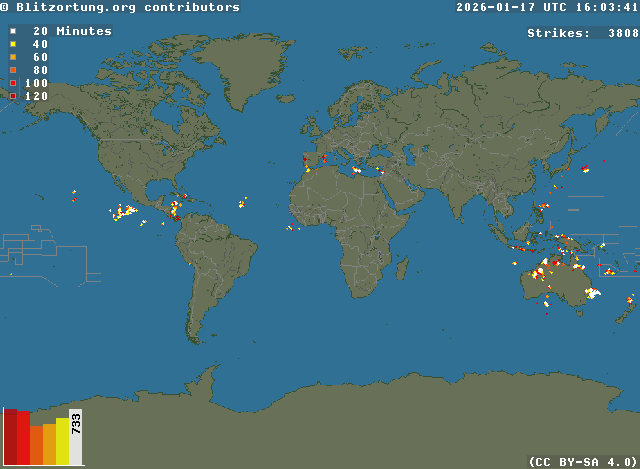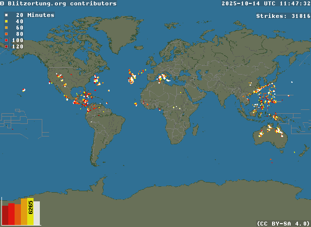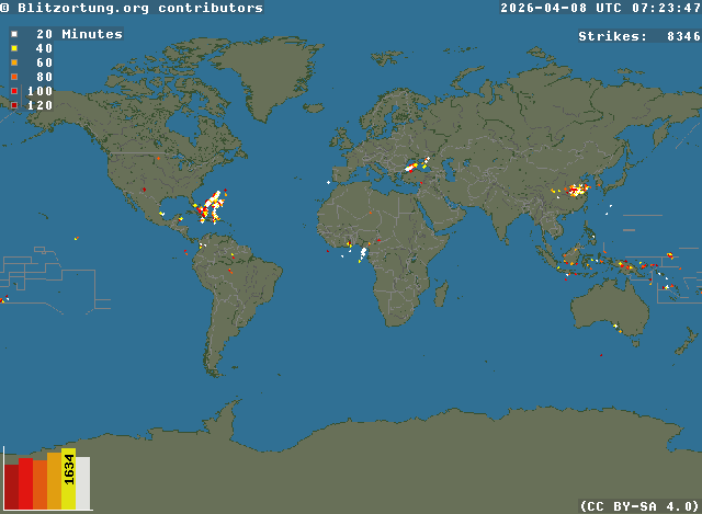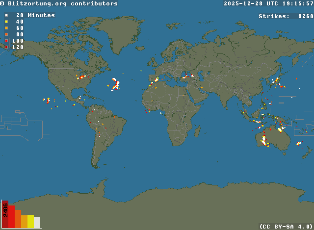 リアルタイムの雷と雷雨のネットワーク - Real time lightning map