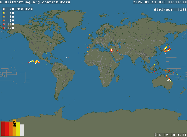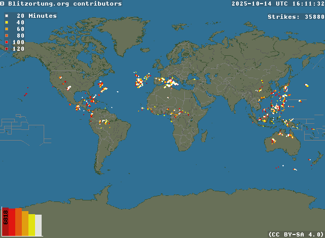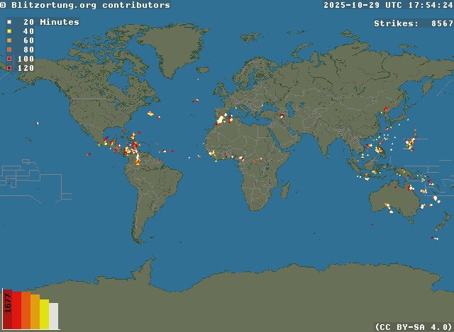 Netwerk voor bliksem en onweer in real time - Real time lightning map