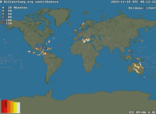 Sieć wykrywania wyładowań atmosferycznych i burz w czasie rzeczywistym - Real time lightning map