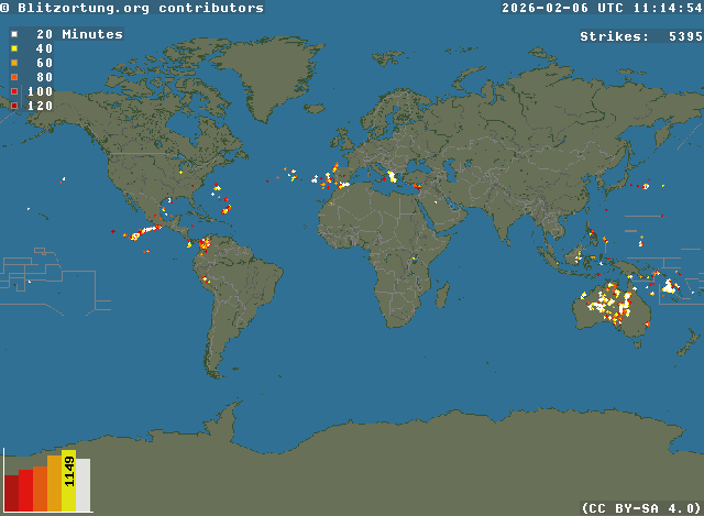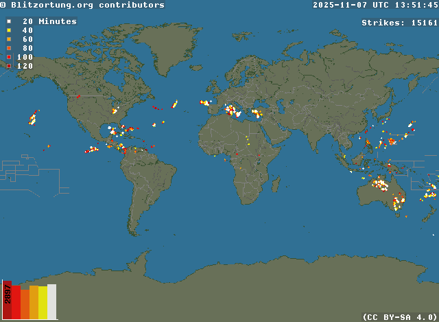 Rede para Relâmpagos e Tempestades em Tempo Real - Real time lightning map