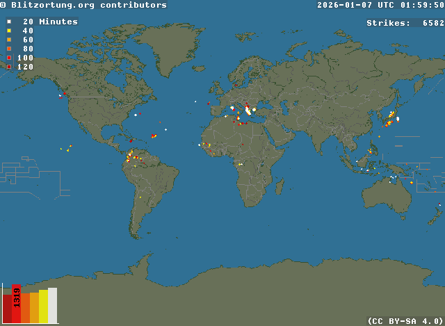 Om ditt språk inte stöds och du vill anpassa menyspråket, sänd då e-post till info ☺ blitzortung.org