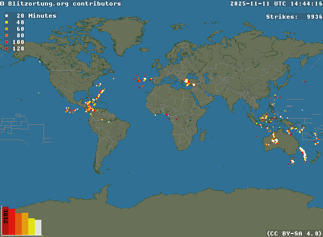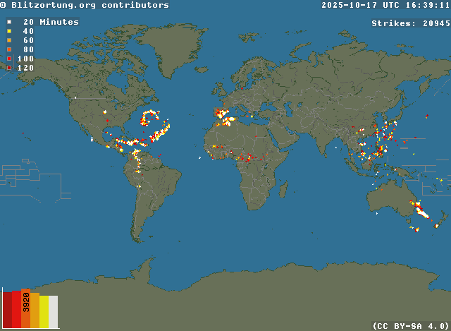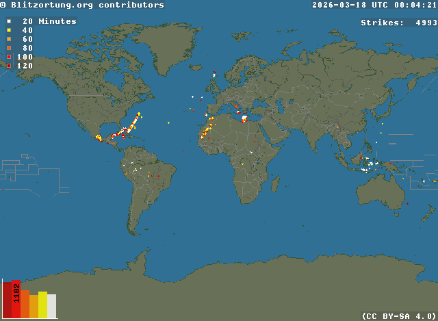 Мережа грозопеленгаціі в реальному часі - Real time lightning map