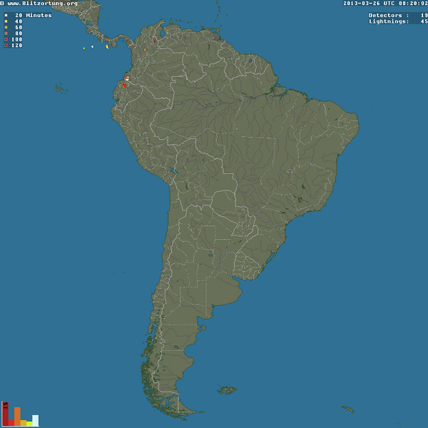 We have started our lightning location in South America. The first lightning discharges are computed from the data of the staton in Cúcuta together with the data of the stations from the US.