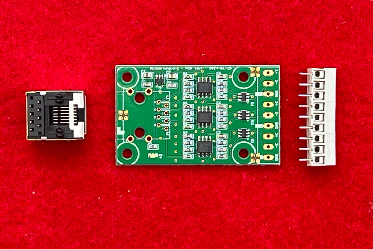 PCB 6.6 (the board with the RS232 interface) for 5 Euro each and the necessary analog-to-digital converters AD7813 for 5 Euro each.